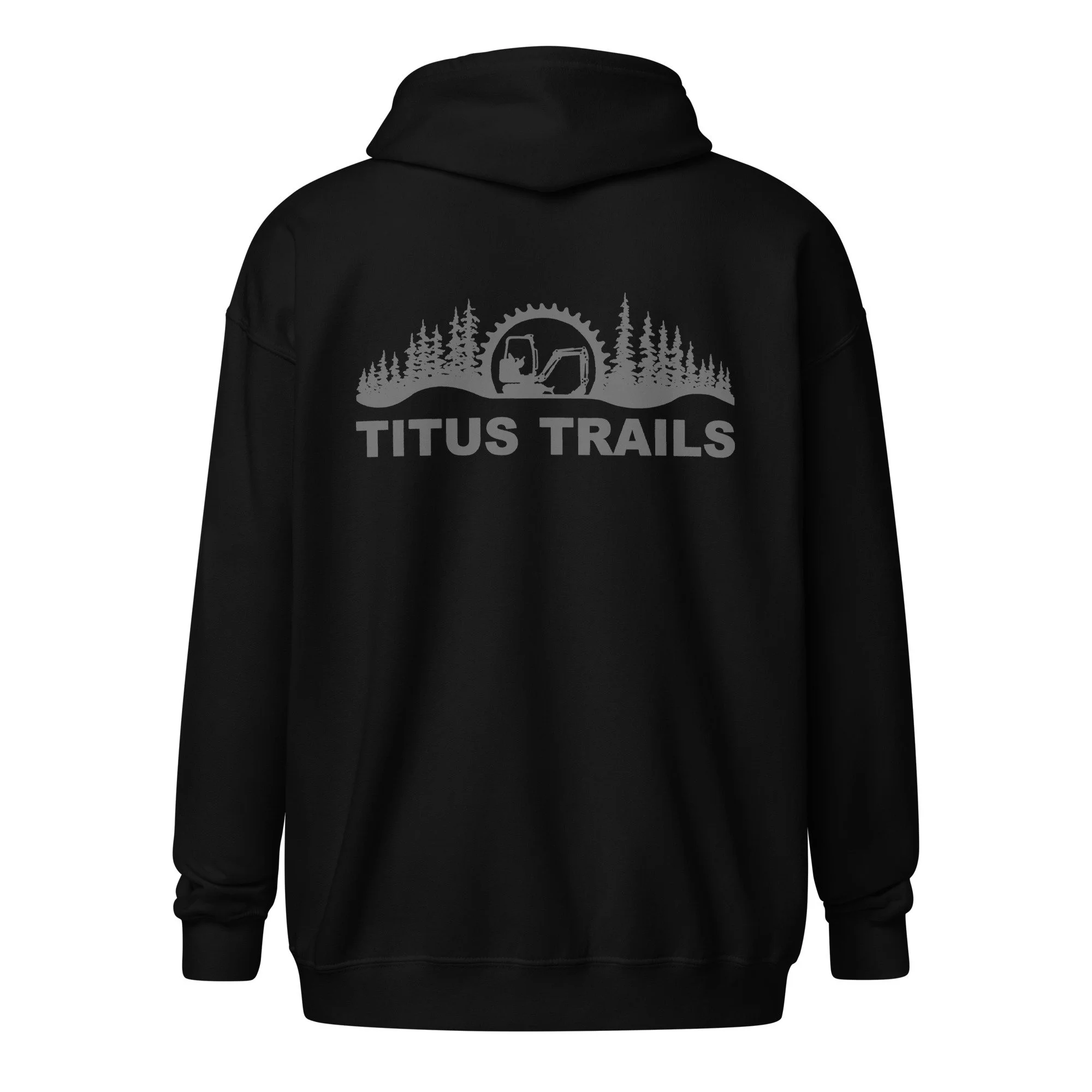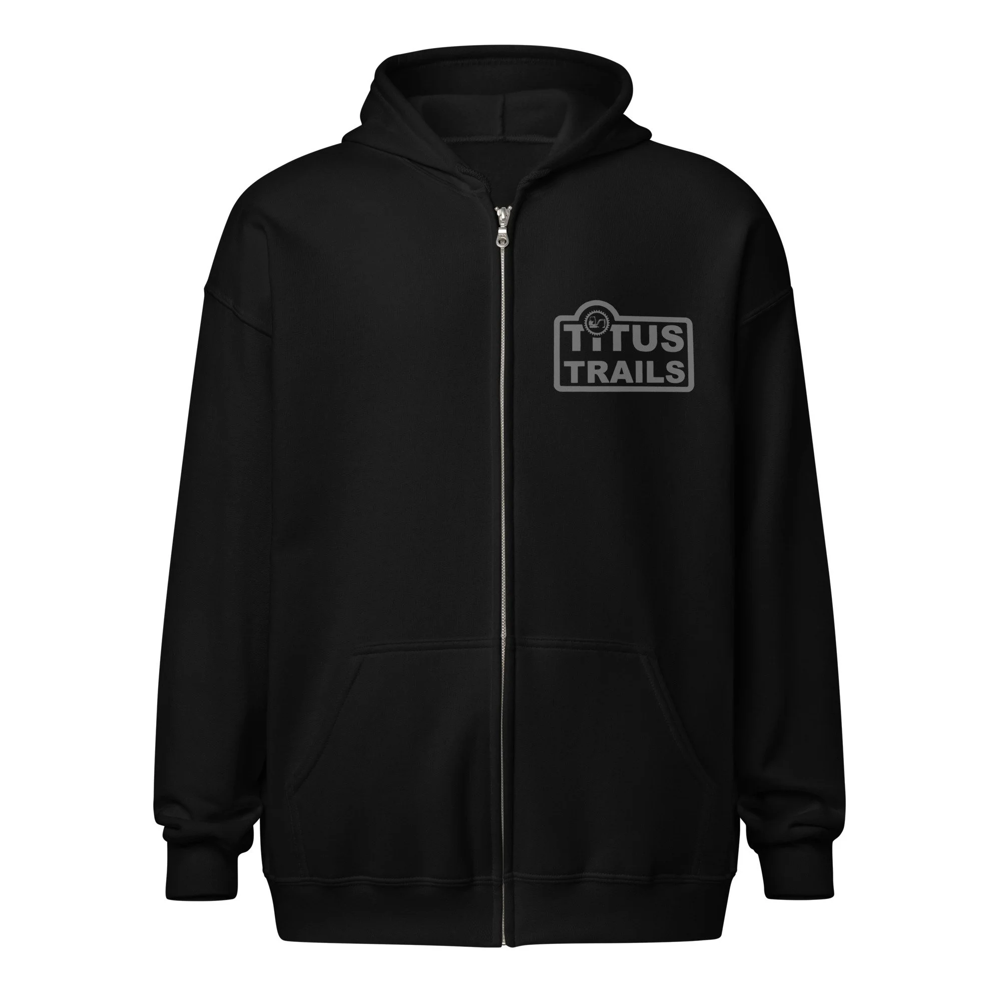 The Titus Trails Store › Grey Logo on Black Full Zip Hoodie Image 1 of 5 Image 2 of 5 Image 3 of 5 Image 4 of 5 Image 5 of 5 Grey Logo on Black Full Zip Hoodie from $51.00 Grey on black elevates this classic black hoodie. Throwing this on really classes up any outfit, no matter how dirty you may be. • 50% cotton, 50% polyester • Soft fleece fabric inside and outside • Air-jet spun yarn for reduced piling • Regular fit • Metal zipper • Front pouch pockets • Unlined hood with color-matched drawcord • Double-needle stitching at shoulders, armholes, neck, waistband, and cuffs Size: Select Size S M L XL 2XL 3XL 4XL 5XL Add To Cart Added! Grey on black elevates this classic black hoodie. Throwing this on really classes up any outfit, no matter how dirty you may be. • 50% cotton, 50% polyester • Soft fleece fabric inside and outside • Air-jet spun yarn for reduced piling • Regular fit • Metal zipper • Front pouch pockets • Unlined hood with color-matched drawcord • Double-needle stitching at shoulders, armholes, neck, waistband, and cuffs